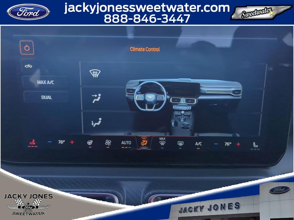 You'll never again be lost in a crowded city or a country region with the navigation system on this 2024 Ford Mustang . The vehicle's Cross-Traffic Alert: Safeguarding you from unexpected traffic when reversing. The state of the art park assist system will guide you easily into any spot. The leather seats in it are a must for buyers looking for comfort, durability, and style. Keep your hands warm all winter with a heated steering wheel in this model . The Ford Mustang comes equipped with Android Auto for seamless smartphone integration on the road. It offers Automatic Climate Control for personalized comfort. with XM/Sirus Satellite Radio you are no longer restricted by poor quality local radio stations while driving the vehicle. Anywhere on the planet, you will have hundreds of digital stations to choose from. Bluetooth® technology is built into this small car, keeping your hands on the steering wheel and your focus on the road.