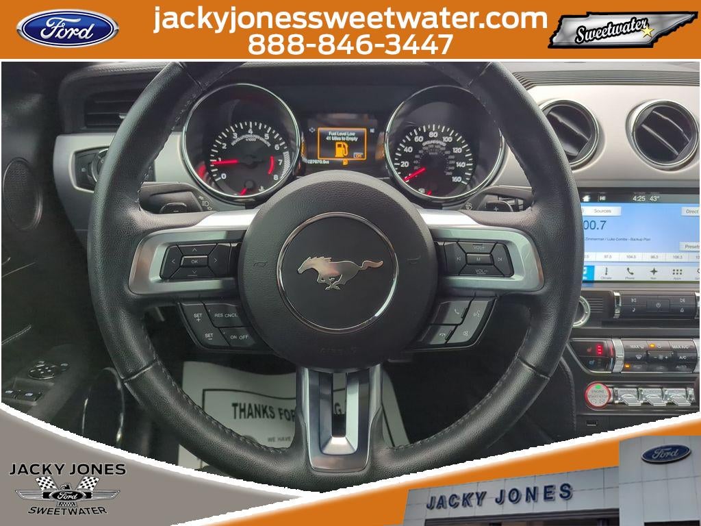 You'll never again be lost in a crowded city or a country region with the navigation system on the vehicle. This vehicle keeps you comfortable with Auto Climate. The rear parking assist technology on this vehicle will put you at ease when reversing. The system alerts you as you get closer to an obstruction. Start it from inside with remote start. The vehicle features a hands-free Bluetooth® phone system. The vehicle is equipped with the latest generation of XM/Sirius Radio. The leather seats in the Ford Mustang are a must for buyers looking for comfort, durability, and style. This vehicle is a certified CARFAX 1-owner. This vehicle has a clean CARFAX vehicle history report. The Ford Mustang warns of approaching vehicles with Cross-Traffic Alert. Protect this model from unwanted accidents with a cutting edge backup camera system. Enjoy the incredible handling with the rear wheel drive on this model. This vehicle projects refinement with a racy metallic gray exterior.