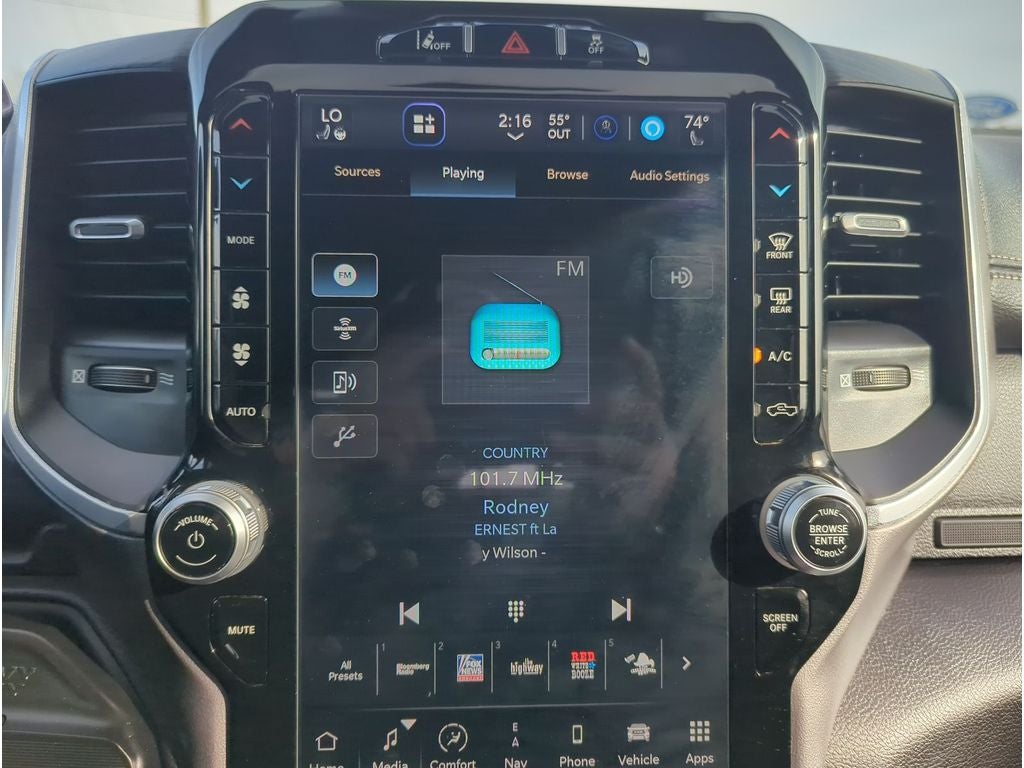 - Laramie Level B Equipment Group: Google Android Auto; Rear Window Defroster; Blind Spot and Cross Path Detection; Rain Sensitive Windshield Wipers; LED Tail Lamps; Power Adjustable Pedals with Memory; Rear Power Sliding Window; Integrated Voice Command with Bluetooth®; Connectivity - US/Canada; 12" Touchscreen Display; Auto Power-Folding Mirrors; GPS Navigation; GPS Antenna Input; Exterior Mirrors with Heating Element; Auto Dimming Exterior Mirrors; SiriusXM with 360L; Connected Travel and Traffic Services; Front LED Fog Lamps; Heated Second Row Seats; LED Reflector Headlamps; Mirror Running Lights; Foam Bottle Insert (door Trim Panel); Alexa Built-In; Apple CarPlay; Power-Adjustable Convex Aux Mirrors; Off-Road Information Pages; Forward and Reverse Utility Lights; Selectable Tire Fill Alert; Trailer Tow Pages; Disassociated Touchscreen Display; HD Radio; Uconnect 5 Navigation with 12.0" Display Radio; Power Heat Fold Memory Telescopic Mirrors; Exterior Mirrors with Supplemental Signals; Exterior Mirrors Courtesy Lamps; Remote Tailgate Release; 17 Speaker Harman/kardon Premium Sound; Auto High Beam Headlamp Control; Chrome Exterior Mirrors; Center Hub; Exterior Mirrors with Memory; Power Adjust Mirrors; 2nd Row in Floor Storage Bins; Power Telescoping Mirrors; Auto Dimming Exterior Passenger Mirror; Auto Adjust in Reverse Exterior Mirrors; ParkSense Front/rear Park Assist System